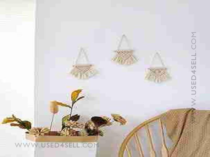 ماكونو مجموعة مكرمية صغيرة للتعليق على الحائط مكونة من 3 قطع بتصميم بوهو لطيف لتزيين شجرة الكريسماس والسيارة والحضانة والحمام وغرفة النوم المعيشة والسكن الجامعي وفكرة المنزل، مقاس 3.5 انش عرض ×، عاجي